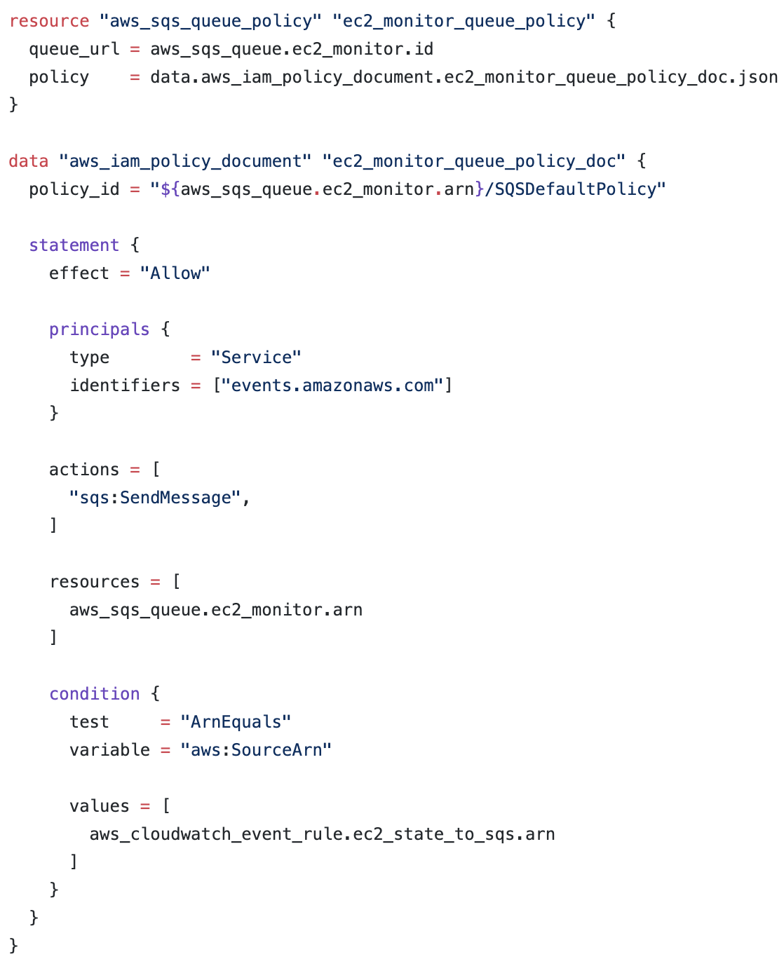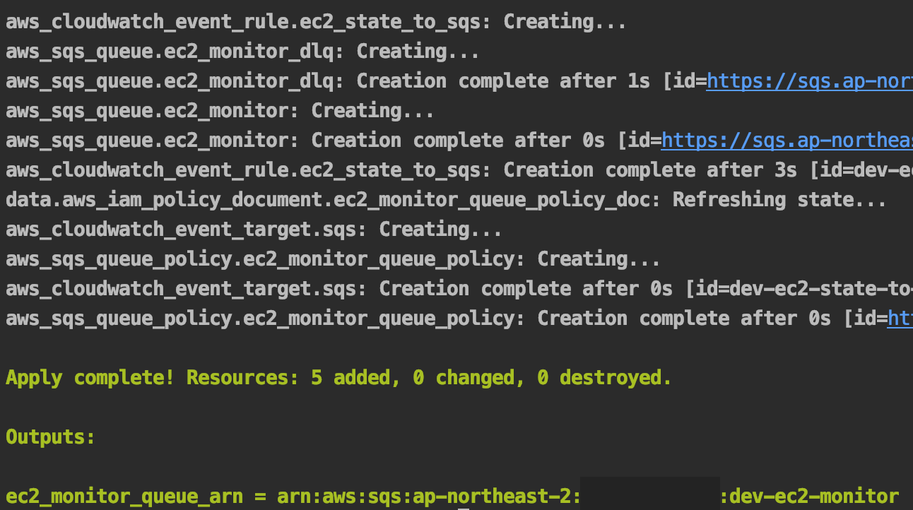 아까 저장한 ec2_monitor_queue_arn이 사용되는 것도 볼 수 있다 :)