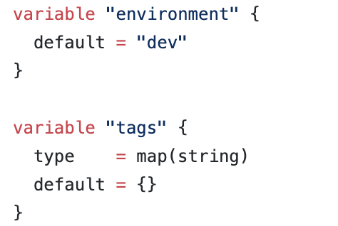 environment와 tags 두 개의 변수에 dev 환경을 나타내는 값을 입력하는 것을 볼 수 있다.
