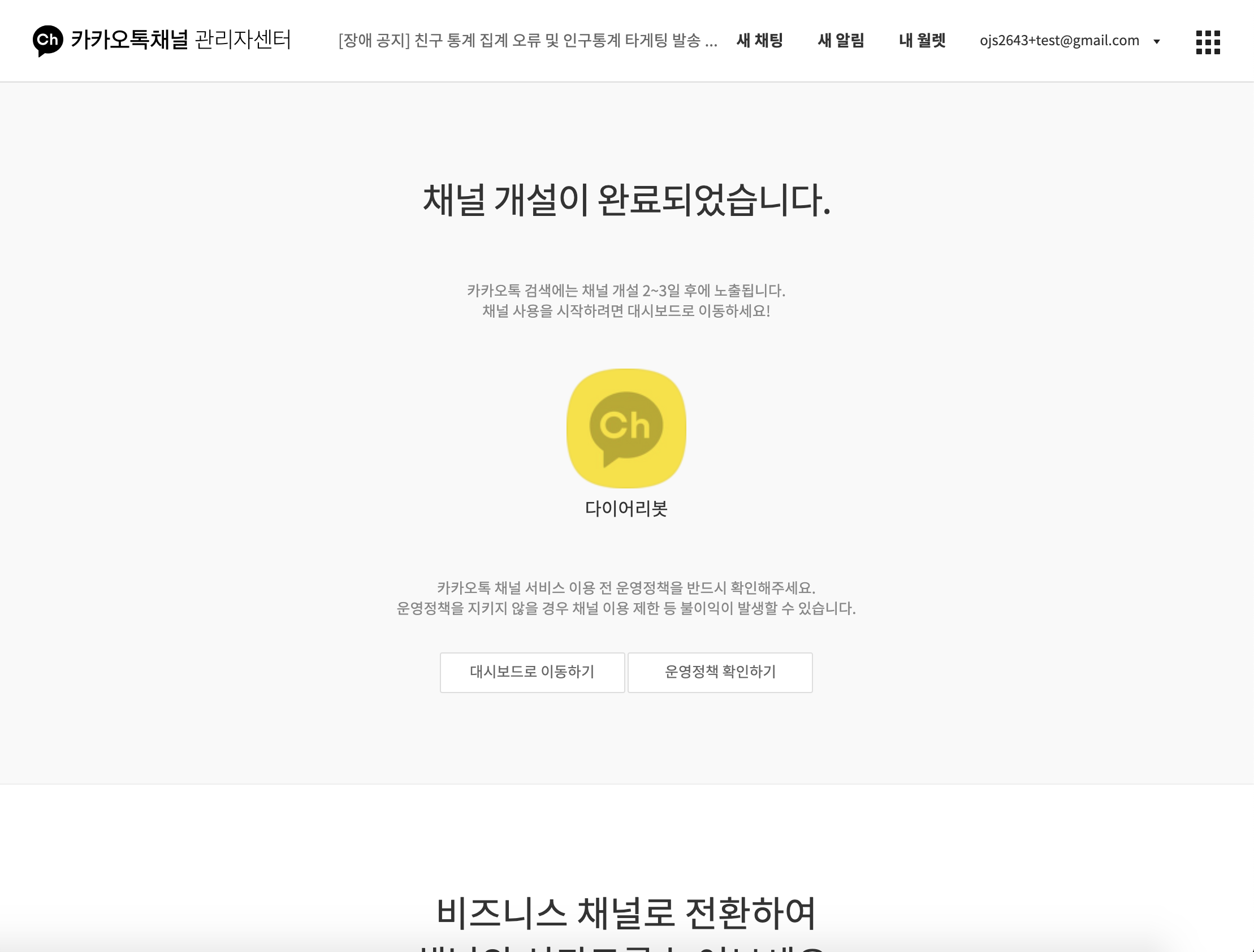 확인 버튼을 누르면 채널 개설이 끝난다.