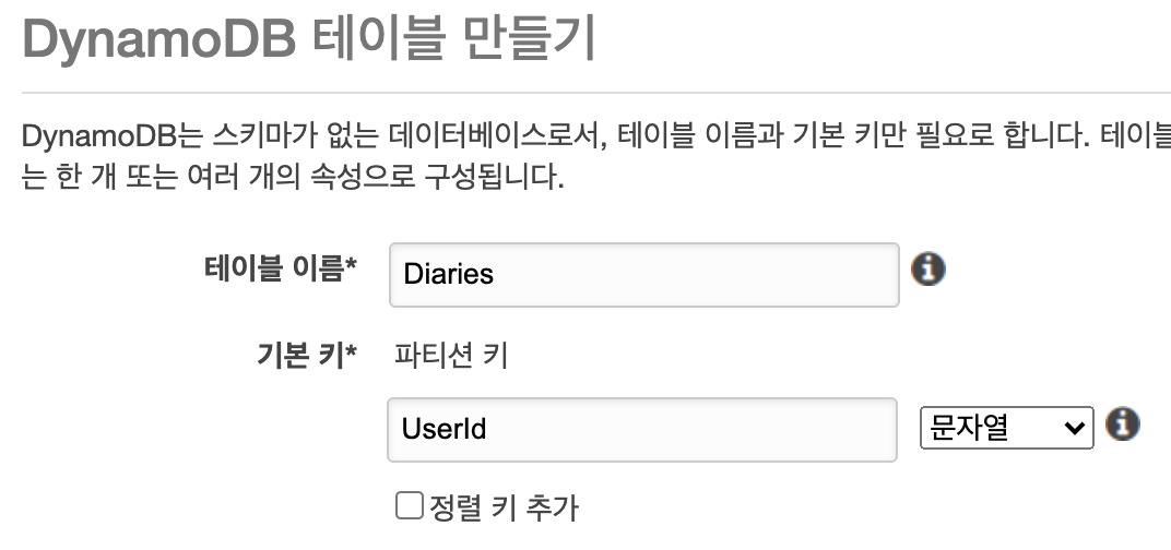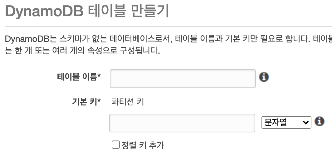 DynamoDB 테이블 만들기